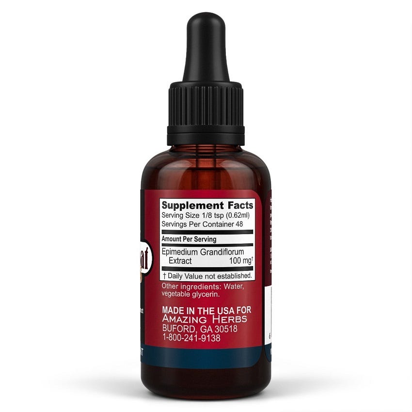 Amazing Herbs Horny Goat Express™ liquid extract is made from Epimedium grandiflorum, a powerful Chinese tonic herb whose first recorded use dates back to the ancient text, Shen Non Ben Cao Jing (ca. 200 B.C.-100 A.D.) were was it described as a warming herb that benefitted jing (semen or life essence). It has been traditionally used for kidney & adrenal support, for male endocrine function, erectile support and enhancement of libido in men and women.