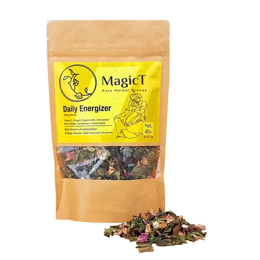 MagicT Daily Energizer is a tea to wake you and revive you. Open the pack and enjoy its subtle beauty and aroma.