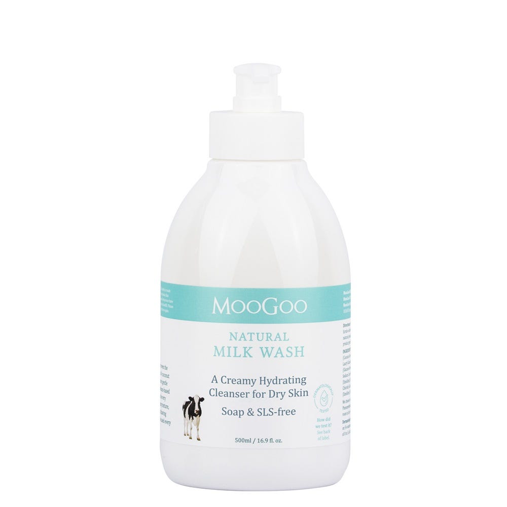 MooGoo’s Milk Wash is one of the brand’s most loved products, formulated with a gentle blend of five natural cleansers. This approach is kinder to the skin compared to a single, more concentrated surfactant. The natural cleansers used are effective yet mild, helping to cleanse without stripping the skin’s moisture barrier. While the foaming action may be less intense than synthetic alternatives like SLS or sulphates, MooGoo prioritises natural ingredients that are better for both skin health and the environment.