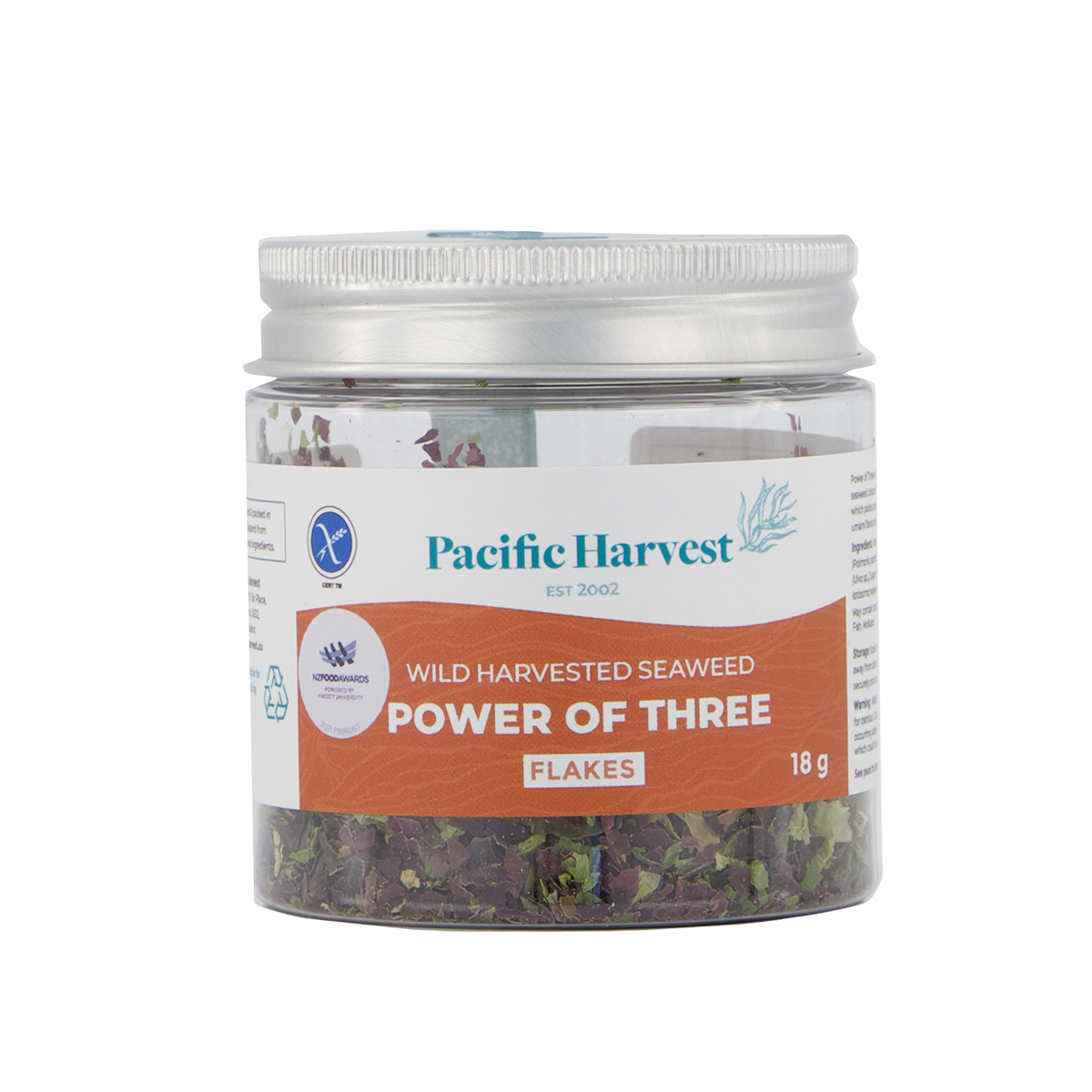 Pacific Harvest's unique Power of Three Seaweed Flake Blend is made with nothing but delicious, raw, dried seaweed flakes - one from each colour group brown, green and red.