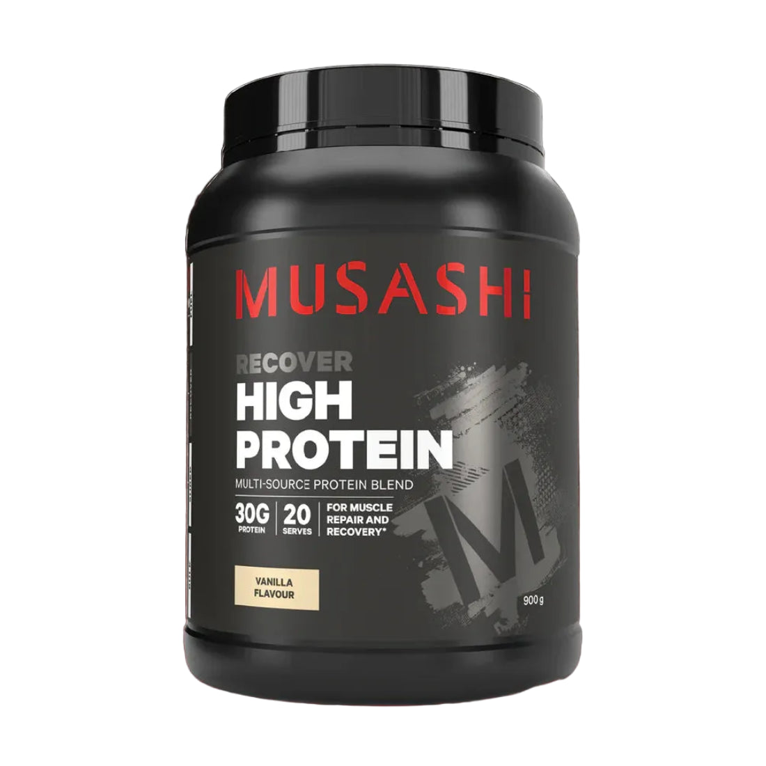 Musashi High Protein Powder is a versatile protein supplement to support a active lifestyle and training goals. Scientifically formulated to be high in protein for muscle recovery, Musashi High Protein contains high quality protein sources in a delicious tasting shake.