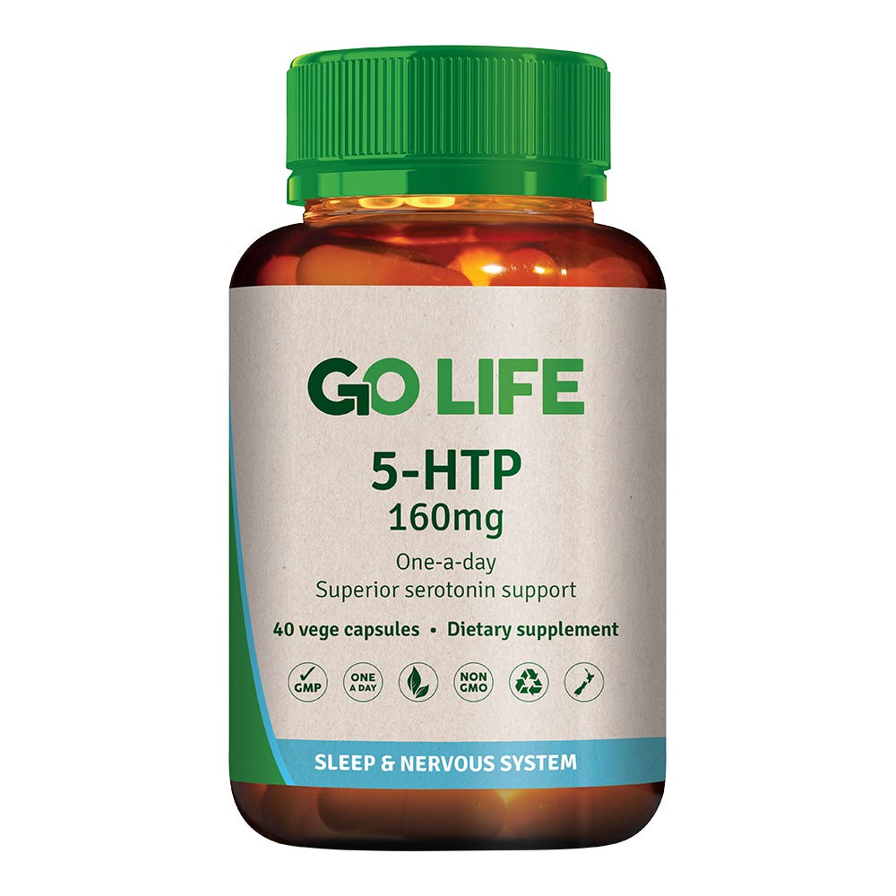 GO LIFE 5-HTP 160mg supports the healthy production of serotonin in the brain. An increase of the hormone serotonin, provides for better, restful sleep, as well as better moods and a more positive outlook on life.