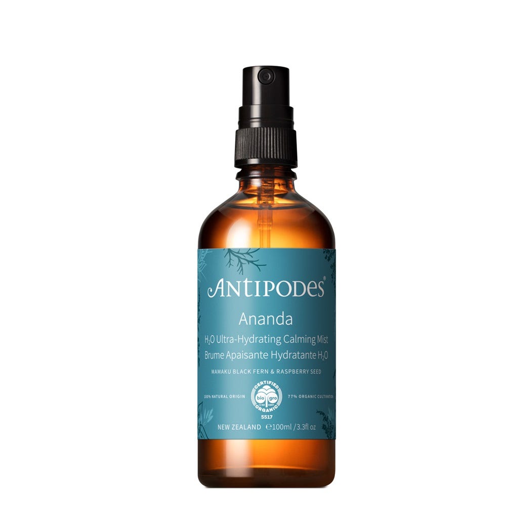 Antipodes Ananda H₂O Ultra-Hydrating Calming Mist helps you restore calm to dehydrated, stressed, or sensitive skin with this hydrating toner.
