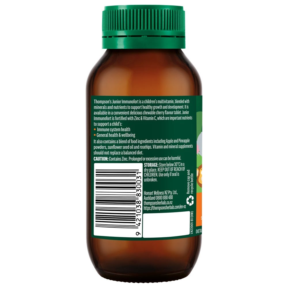 Thompson's Junior Immunofort is an immune multivitamin, blended with minerals and nutrients to support healthy growth and development.
