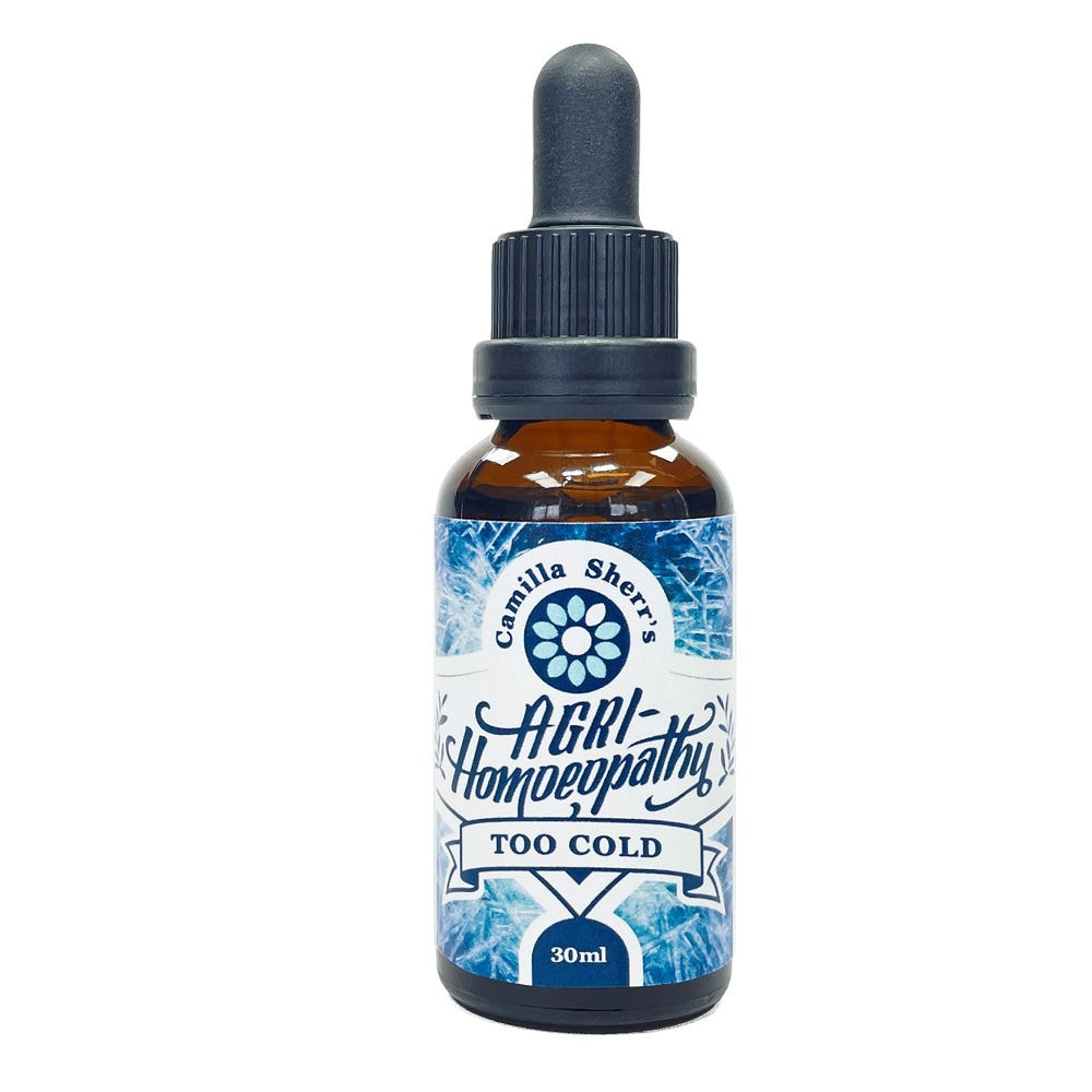 Naturo Pharm Camilla Sherr's Too Cold provides homoeopathic plant support to help your plants overcome frost.