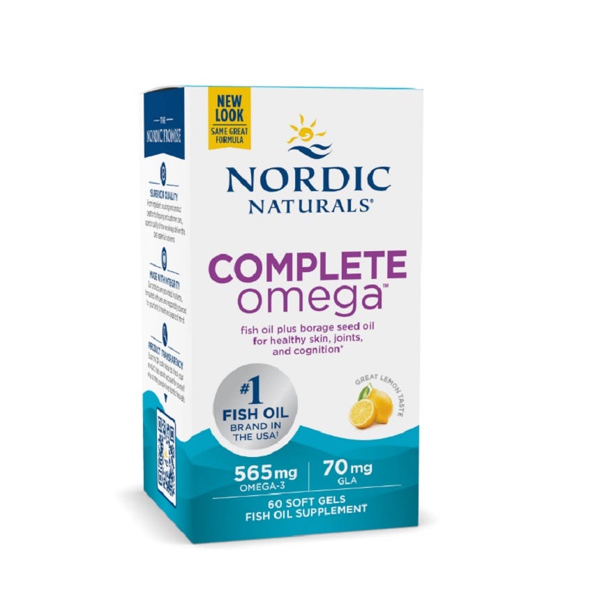 Nordic Naturals Complete Omega is a comprehensive omega-3 supplement that combines the benefits of both EPA (eicosapentaenoic acid) and DHA (docosahexaenoic acid) with added GLA (gamma-linolenic acid) from borage oil. This unique blend of essential fatty acids supports heart, brain, joint, and overall health.