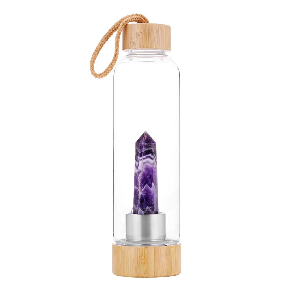 With a handle attached to top, these bottle come in five varieties available – Rose Quartz, Black Fluorite, Black Obsidian, Green Adventurine and Amethyst