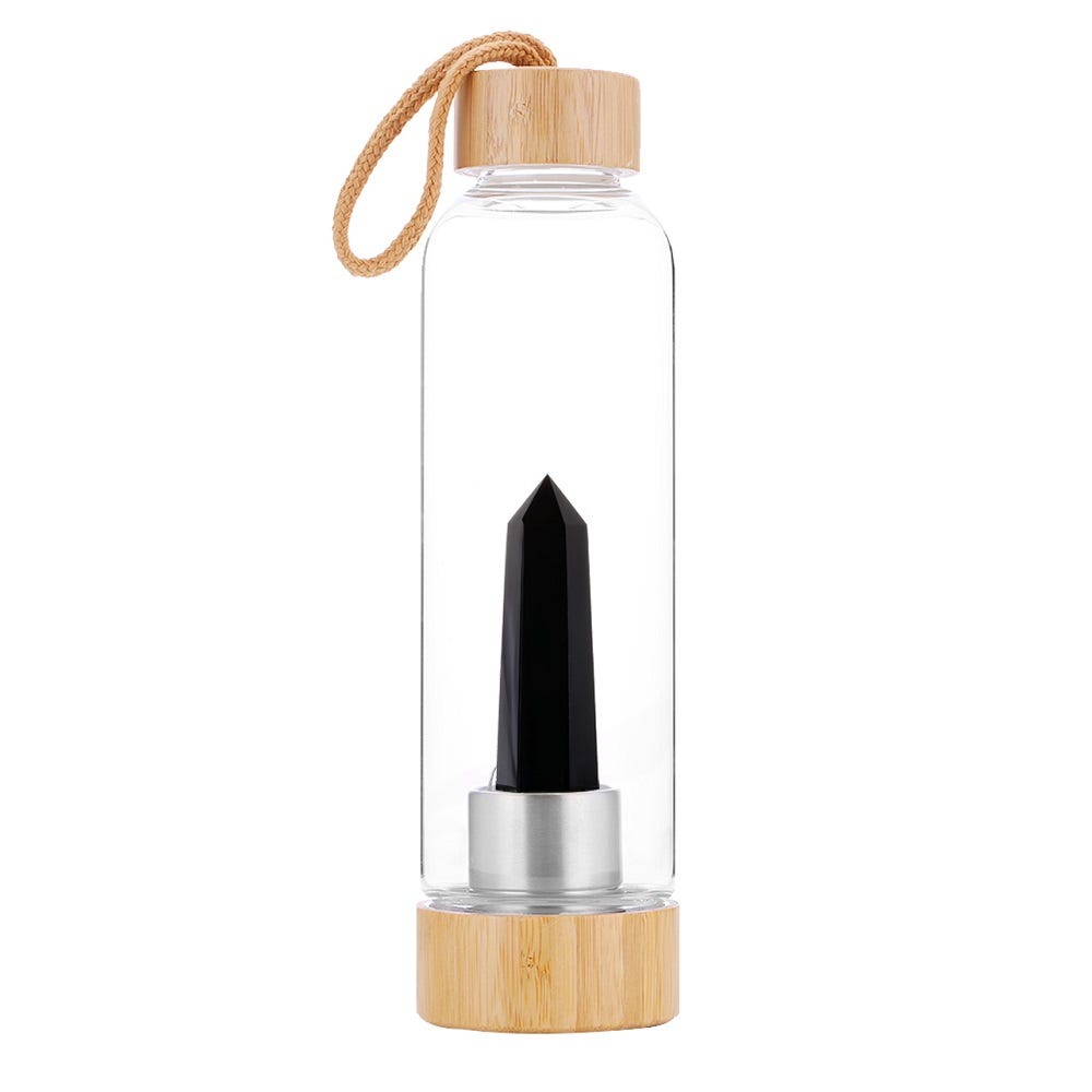 With a handle attached to top, these bottle come in five varieties available – Rose Quartz, Black Fluorite, Black Obsidian, Green Adventurine and Amethyst
