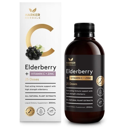 Harker HerbalsBe Well Vitamin C + Elderberry provides concentrated elderberry extract that is rich in anthocyanins and flavonoids, and beneficial to support a strong immune response to invaders.