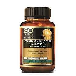 GO Healthy GO Vitamin D3 1-A-Day 1,000IU Plus with Vitamin C & Zinc is a high potency triple action immune formula to support all year around immunity.