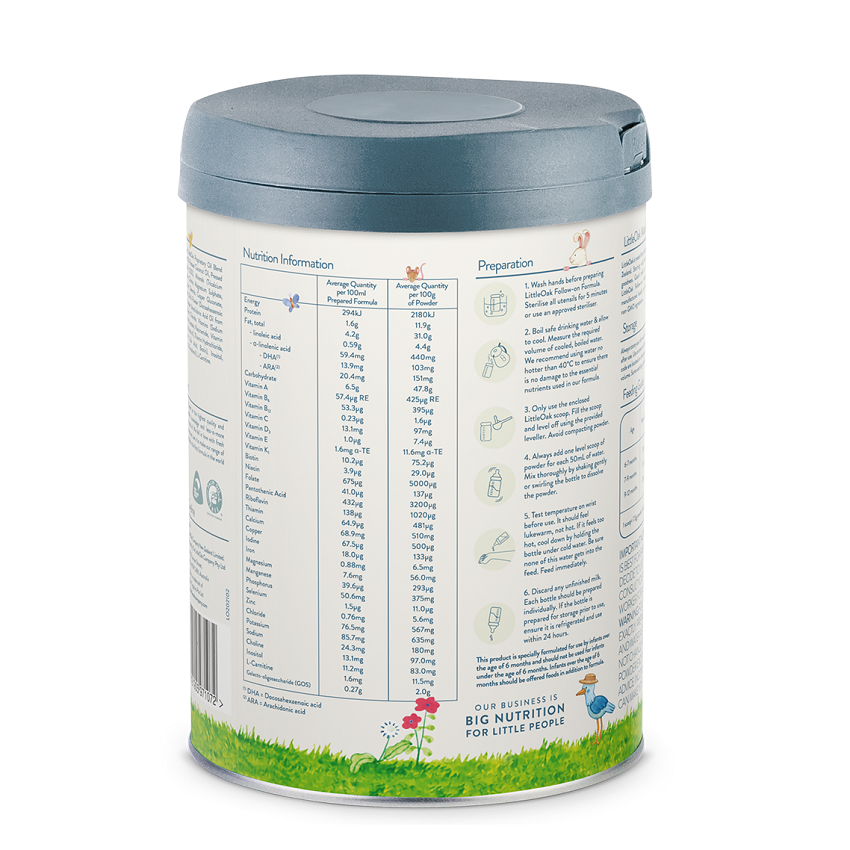 LittleOak’s Infant Formula Stage 2 (6-12 Months) is made with love from fresh whole goat’s milk in New Zealand. Starting with fresh goat milk means less processing, more natural goodness. Little Oak is the first formula in the world to be certified palm oil-free – better for babies, and much better for the environment.