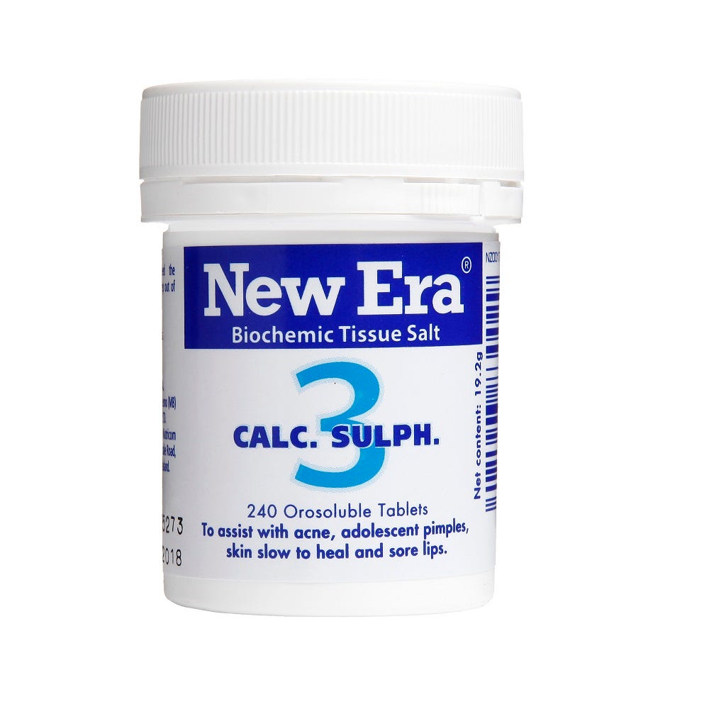 New Era No.3 Calc Sulph provides Mineral Salt support for blood health and skin conditions. Calc Sulph can provide relief from the symptoms of acne, slow healing wounds, spots and pimples, and may also assist during puberty skin disorders.