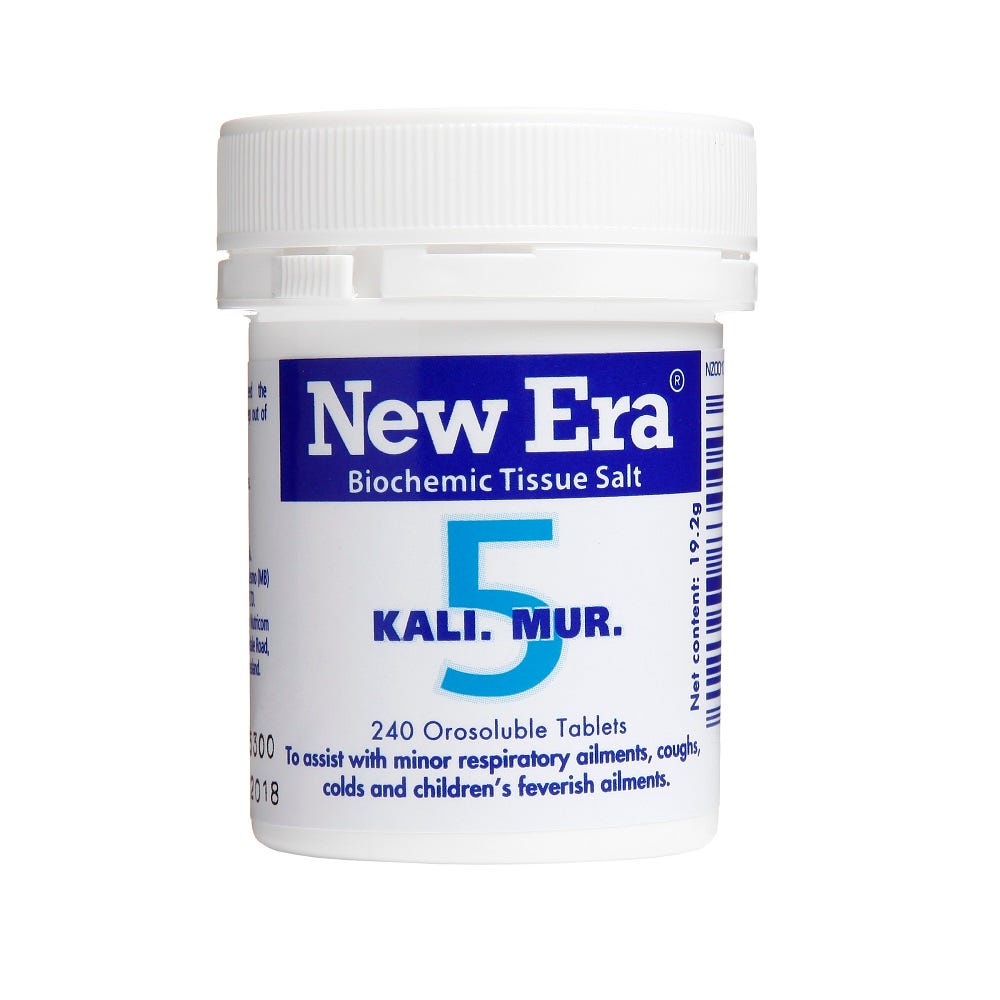 New Era No 5 Kali. Mur (Potassium Chloride) provides Mineral Salt support for respiratory ailments and winters ills and chills. Kali. Mur may provide relief from the symptoms of winters ills and chills, respiratory illness, sore throats, tonsillitis, glandular swellings and mucous congestion.