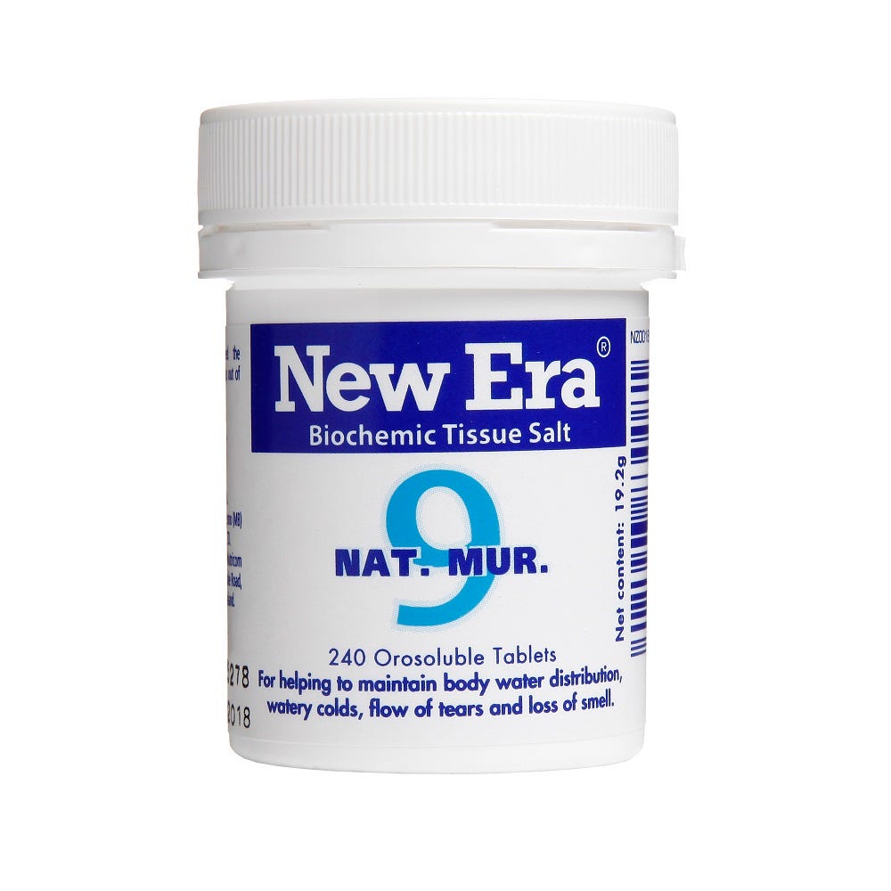 New Era No 9 Nat. Mur. (Sodium Chloride) provides Mineral Salt support for fluid balance. Nat. Mur. may provide relief from excessive moisture or dryness, running nose, fluid retention or distribution and also the supporting the sense of taste and smell.