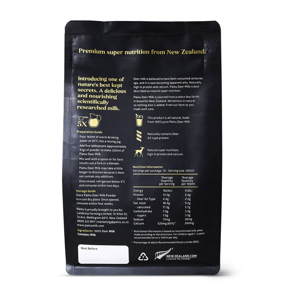 - Add 5 tablespoons (approximately 42g) of powder to make 200ml of Pāmu Deer Milk.