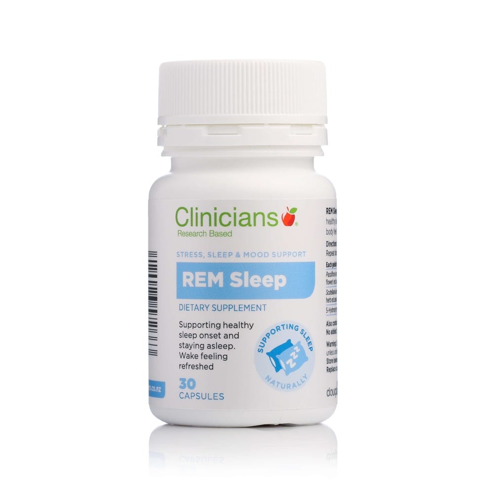 Clinicians REM Sleep provides a combination of vitamins, minerals and herbs that have a calming effect and promote relaxation for a good night's rest.