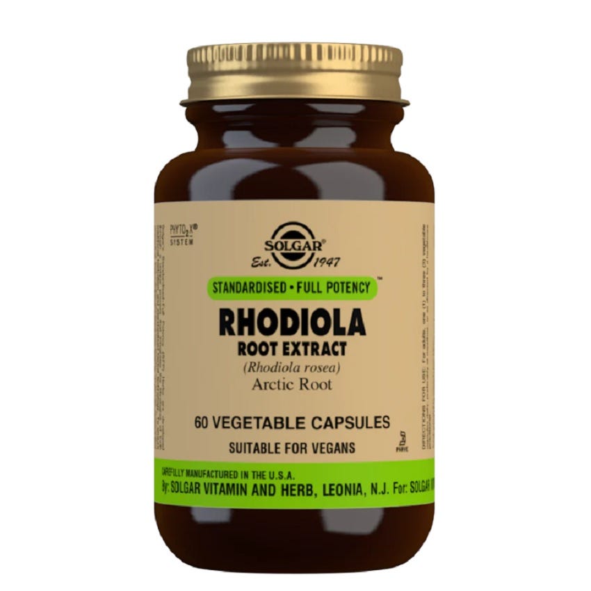 Solgar® Rhodiola Root Extract Vegetable Capsules is one of Solgar's premium-quality standardised full potency botanical formulas. Rhodiola rosea has a long history of use in Russia and China and its usefulness has been attributed to its adaptogenic properties. Rhodiolia has been a well-known potent adaptogen used to support the body and help normalize functions when life gets stressful.