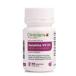 Clinicians Sunshine Vitamin D3 with Vitamin K2 provides a synergistic combination of Vitamin D3 and K2 for essential daily support for optimal bone health, muscle strength, joint mobility and immunity.