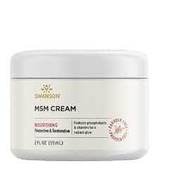 Give your skin a radiant glow with the topical nutrition of Swanson MSM Cream. Methylsulfonylmethane (MSM) serves as a highly absorbable source of organic sulfur, which the body needs in order to form the bonds that hold tissues together, making it important for healthy cartilage, ligaments, tendons, skin, hair, and nails. This nourishing, restorative cream combines MSM with aloe vera gel, vitamins A, E and B-5, almond oil, jojoba oil, rosemary oil, and extracts of chamomile, ginseng, grapefruit and ginkgo biloba.