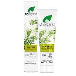 Dr. Organic's Organic Tea Tree Toothpaste is a triple action toothpaste containing Organic Tea Tree oil, Aloe Vera, Silica, Icelandic Moss and Horse Chestnut, naturally cleans the teeth and leaves the mouth feeling fresh.