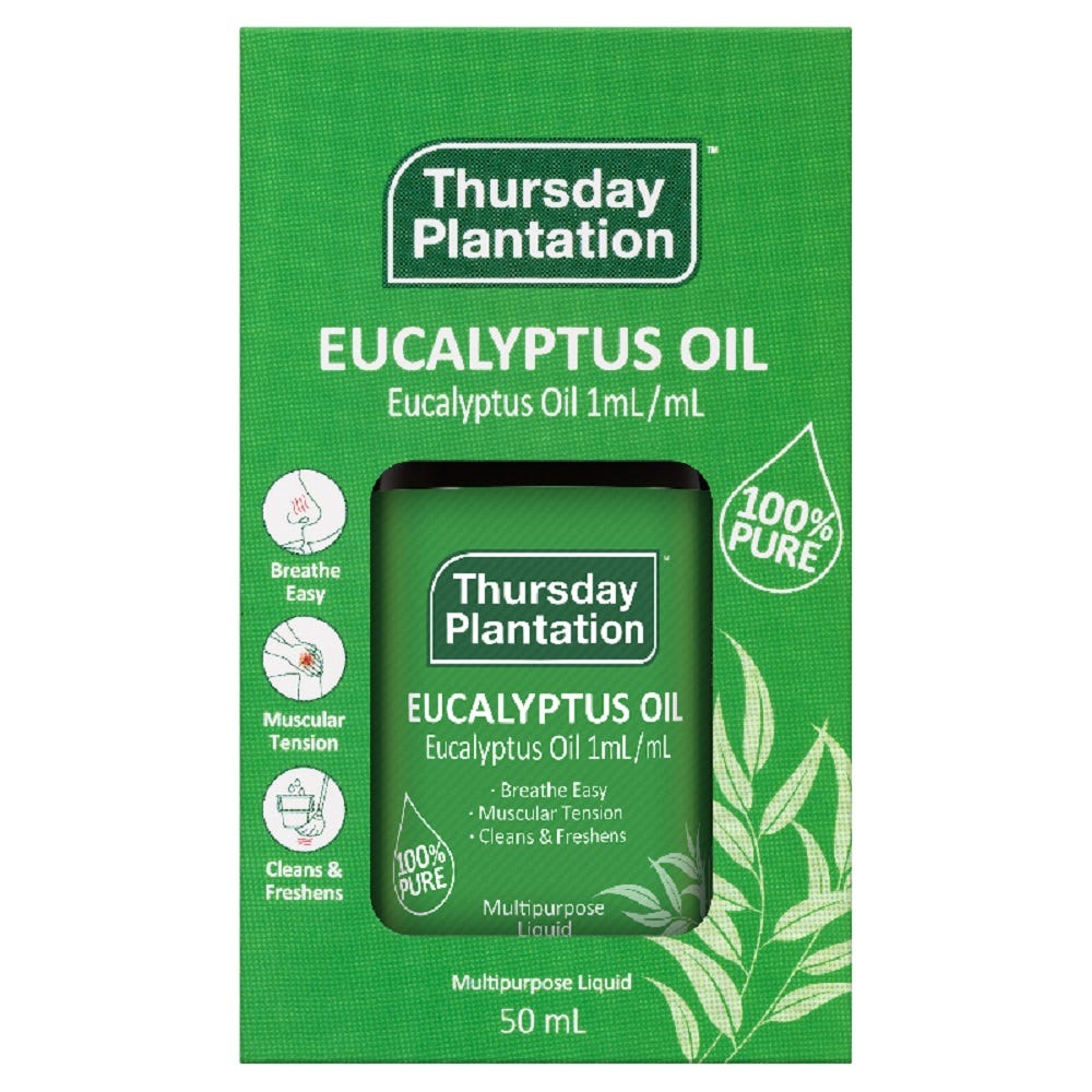 Thursday Plantation’s Eucalyptus Oil contains 100% pure Eucalyptus Globulus oil with a high percentage of the Eucalyptol compound which is responsible for the oil’s clean, sharp, smell as well as its value.