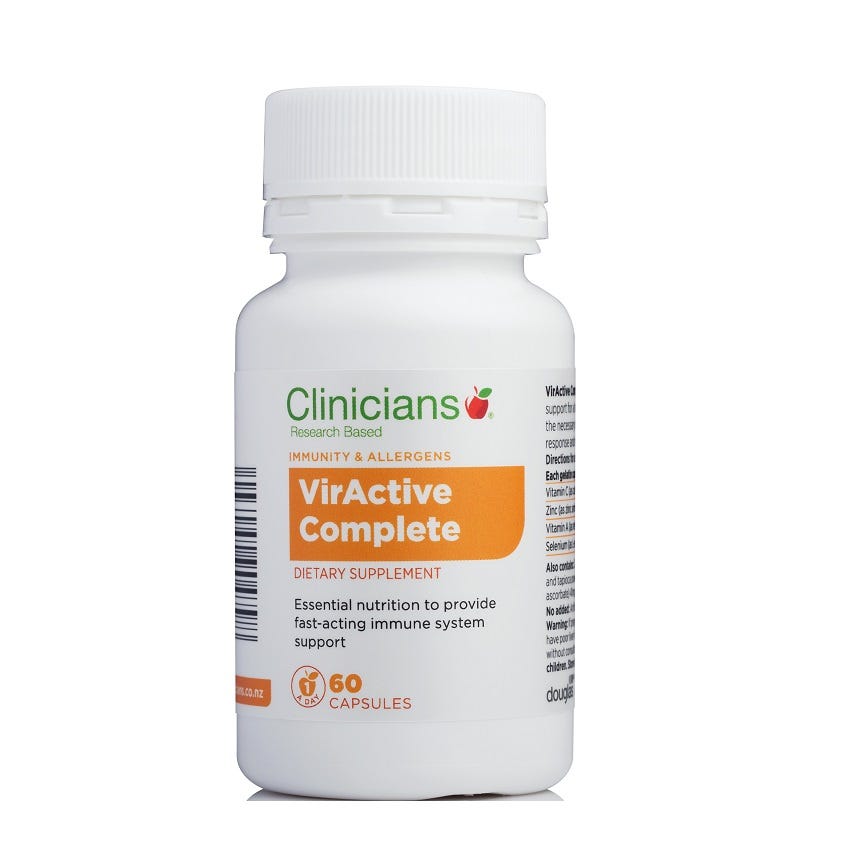 Clinicians VirActive Complete providers high doses of Vitamins A & C, zinc and selenium, which are rapidly depleted when the immune system is activated and contains all the key nutrients depleted by ills and chills.